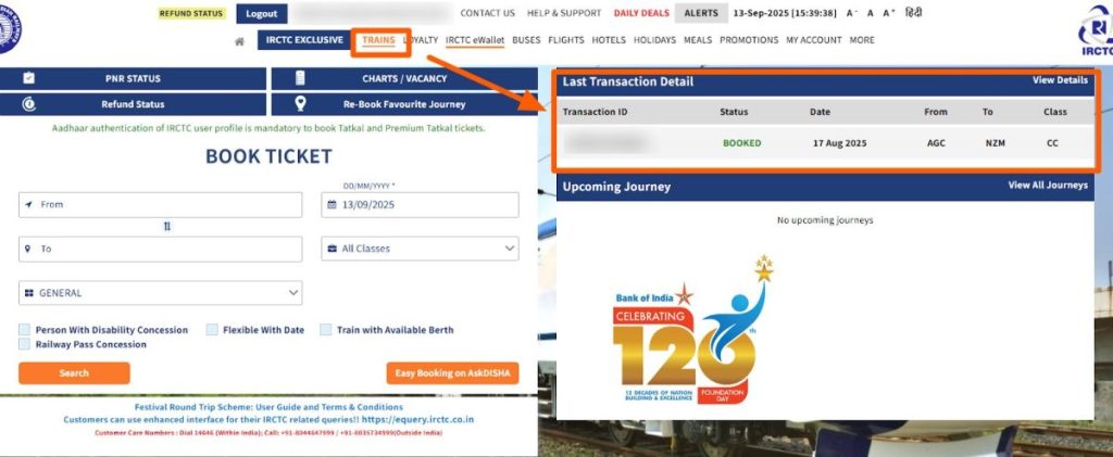 今回、我々はニューデリーからアグラまでの電車を予約しました。面倒だけど、インド国営鉄道(irctc)のサイトから予約をしましょう。